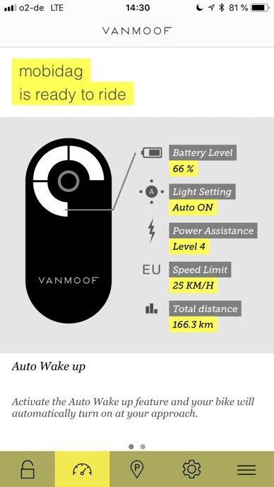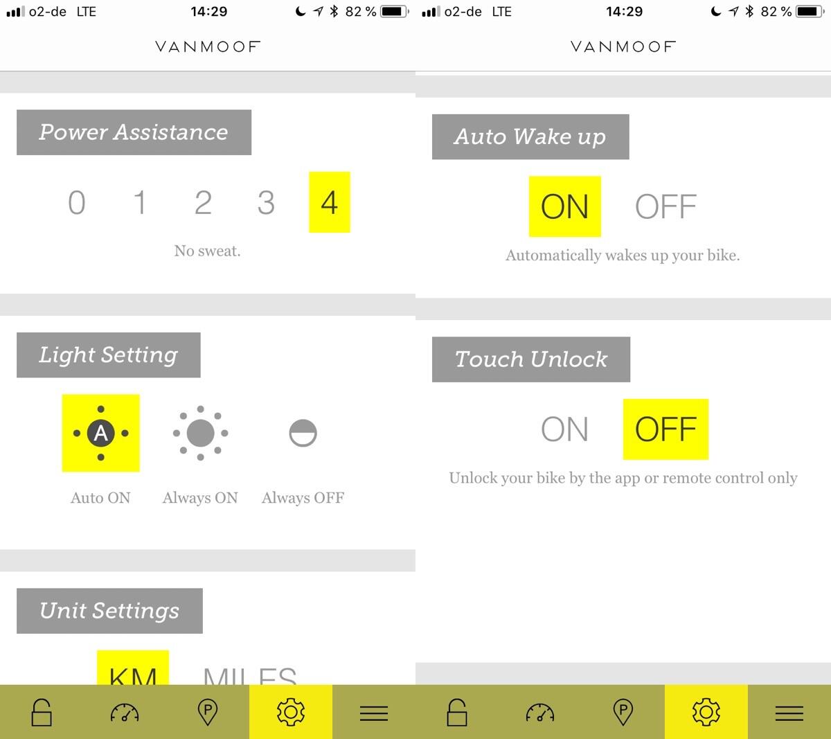 Für mich hat sich allerdings die Möglichkeit per Bluetooth-Fernbedienung als meine favorisierte Methode herausgestellt. So kann man bei Annäherung das Bike einschalten und dann direkt das Schloss aus seiner Verankerung ziehen. Gleiches Prinzip was man heutzutage eigentlich von jedem Auto kennt. Damit das funktioniert muss allerdings die andere Option deaktiviert sein.