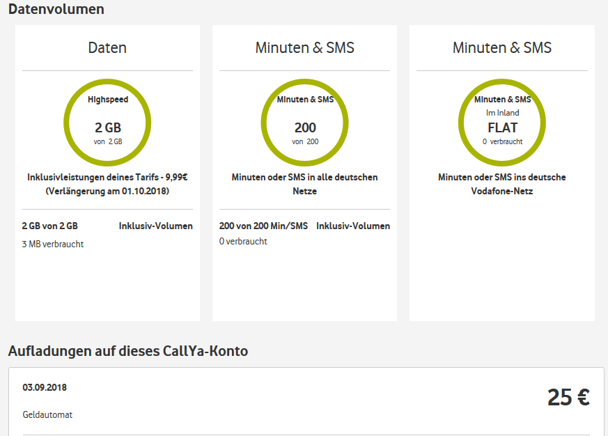 Vodafone wertet die CallYa-Tarife mit mehr Datenvolumen zum gleichen Preis auf. Das bedeutet, dass man im Tarif CallYa Smartphone Special (9,99€/4 Wochen) nun 2 GB statt 1,5 GB pro Abrechnungszeitraum erhält. Der nicht jedem Kunden offerierte Tarif CallYa Smartphone Spezial XL erhält zudem nun 2,5 GB Datenvolumen.