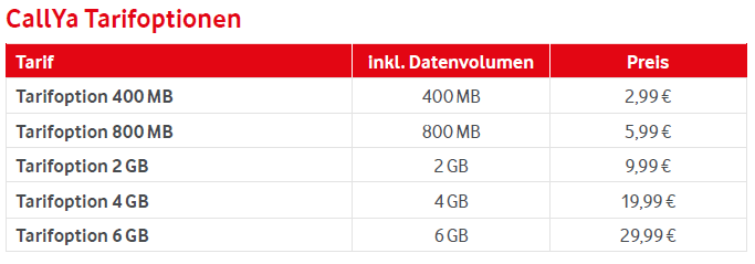 Für die Tarifanpassungen fallen keine Mehrkosten an und die Erhöhung des Datenvolumens erfolgt dauerhaft. Weiterhin werden die Callya-Tarife nicht monatlich, sondern alle 4 Wochen abgerechnet.