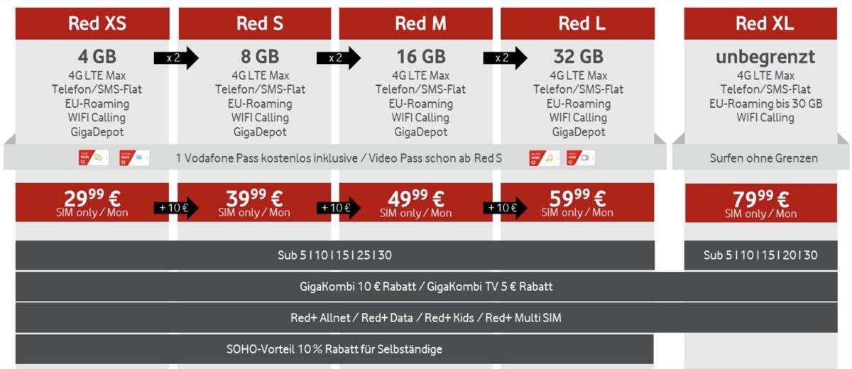 Mit den neuen Red-Tarifen hat Vodafone die Preisstruktur vereinfacht, mehr Datenvolumen inkludiert und verbessert auch die GigaKombi etwas. Nachfolgend findet ihr die wichtigsten Details zu den Tarifen und im Laufe des Tages dürften die Änderungen bei Vodafone selbst live gehen.