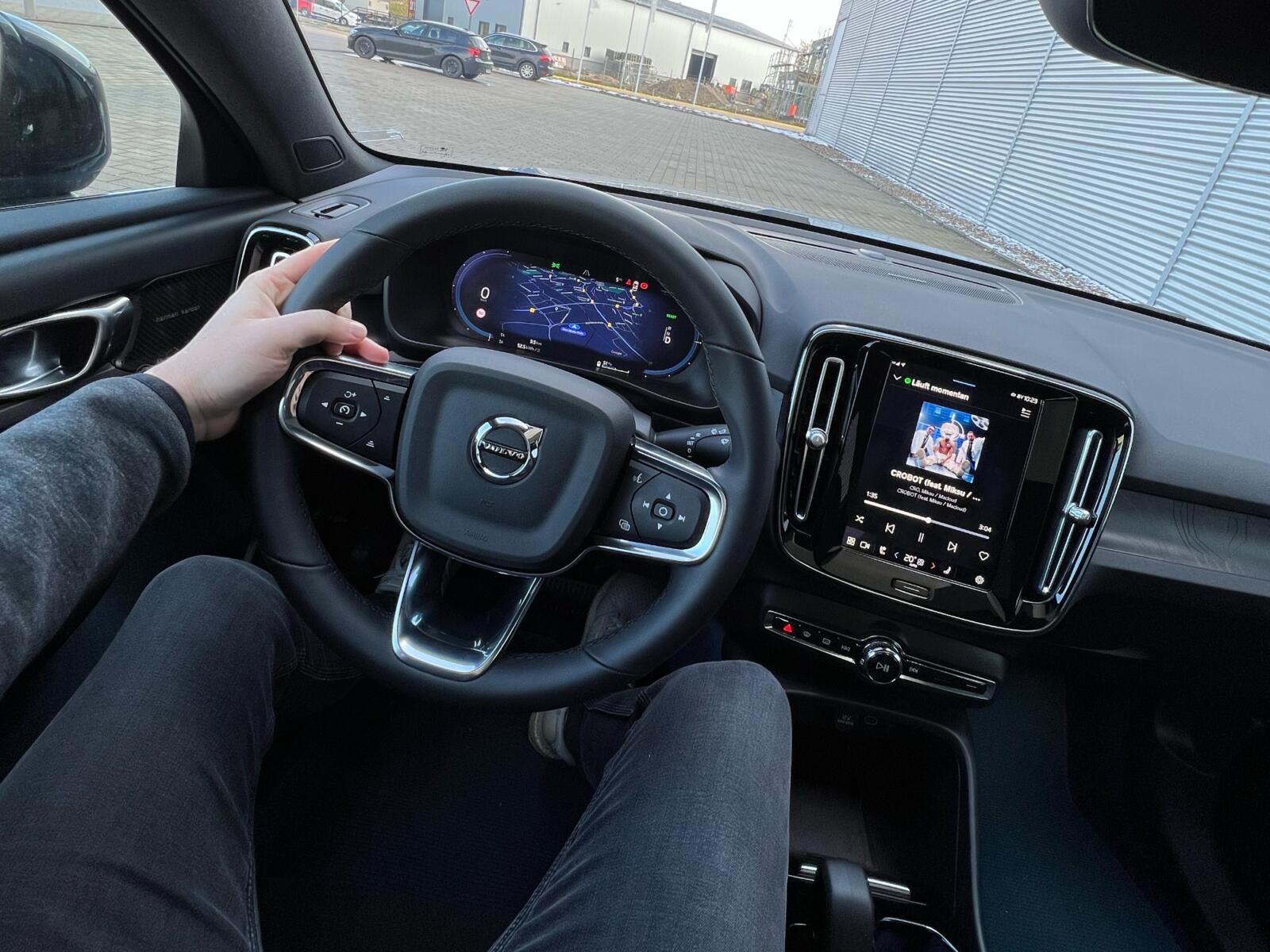 - Nur das Infotainmentsystem wirkt, wie schon beim XC40 Recharge, veraltet. Das Display ist relativ klein, es hat dicke Ränder und könnte gerne moderner wirken. Vor allem, da das Display hinter dem Lenkrad, welches das für mich beste Display von allen Autos ist (u.a. da es nativ Google Maps in einer perfekten Darstellung anzeigt), gut gefällt. Und leider fehlt weiterhin ein Head-up-Display, was Volvo ja theoretisch kann und was ich spätestens im Jahr 2022 auch in dieser Preisklasse erwarten würde, da es ja mittlerweile sogar in Modellen wie einem VW ID.3 verbaut ist. Das ist kein Luxus mehr, das ist Standard.