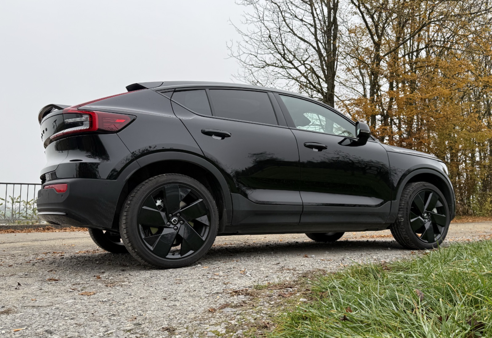- Volvo ist eine Luxusmarke und da erwarte ich etwas Komfort und die üblichen Standards bei über 50.000 Euro. Viele sind vorhanden, wie eine gute Lenkradheizung, aber andere, wie eine Sitzkühlung, fehlen. War mir im Herbst und zum Winteranfang egal, habe ich aber beim Polestar 2 im Sommer geschätzt. Volvo nutzt komplett USB C, es gibt eine Qi-Platte in der Mitte (warum verbauen alle außer Tesla nur eine?) und die elektrische Heckklappe kann bequem mit dem Fuß geöffnet werden. Die Lichter der Volvo-Marken gefallen mir optisch bis heute sehr gut, aber sie leuchten auch sehr gut. Einen Fake-Sound gibt es nicht, hätte ich mir bei einem sportlichen SUV, wenigstens optional, durchaus gewünscht.