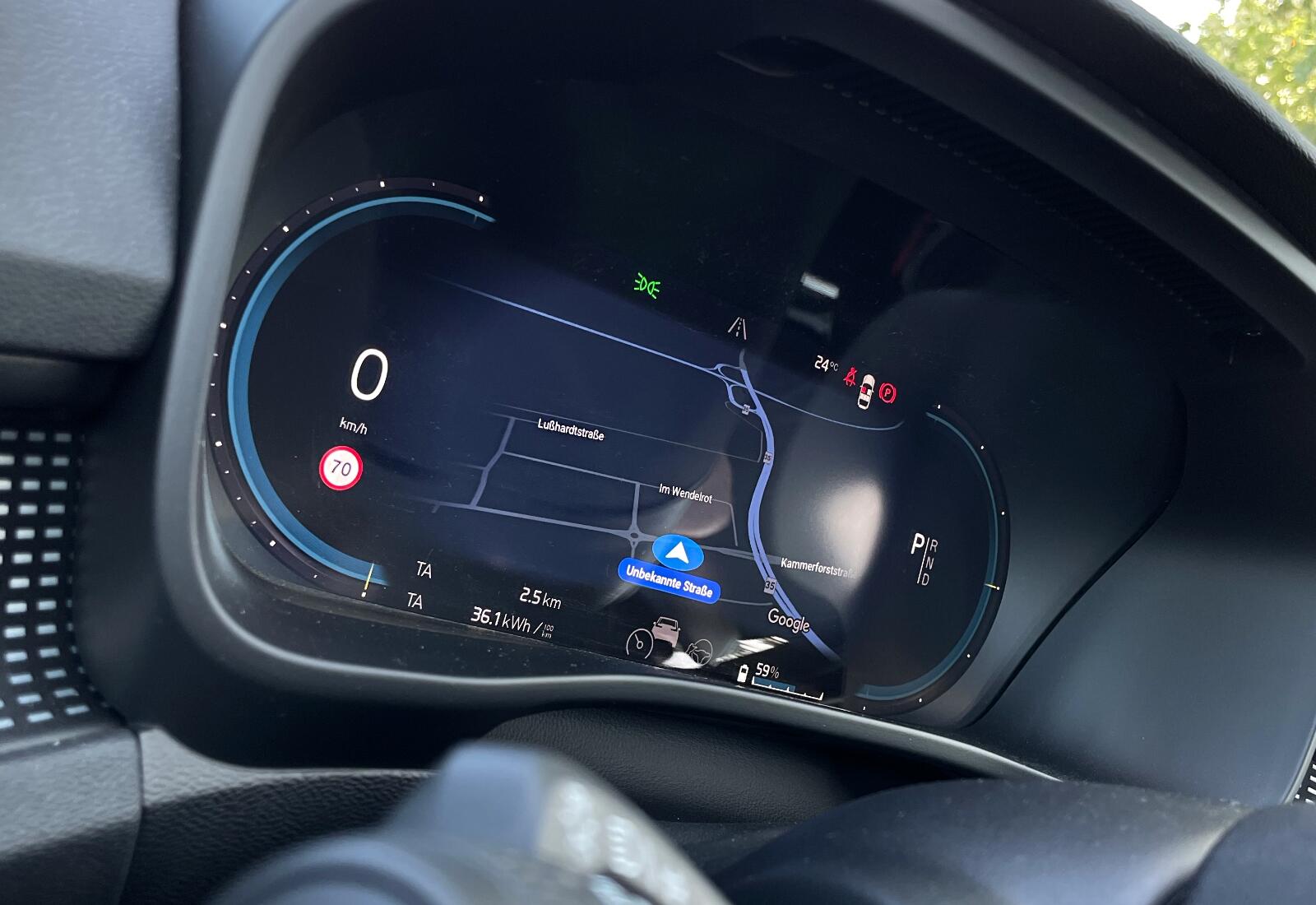 Das Display hinter dem Lenkrad ist wirklich gut und die Integration von Google Maps hervorragend umgesetzt. Allerdings hätte ich in dieser Preisklasse bei der Vollausstattung auch ein Head-Up-Display erwartet. Das gibt es bei Volvo in der Preisklasse darüber, aber der rein elektrische XC40 ist eben sehr teuer.