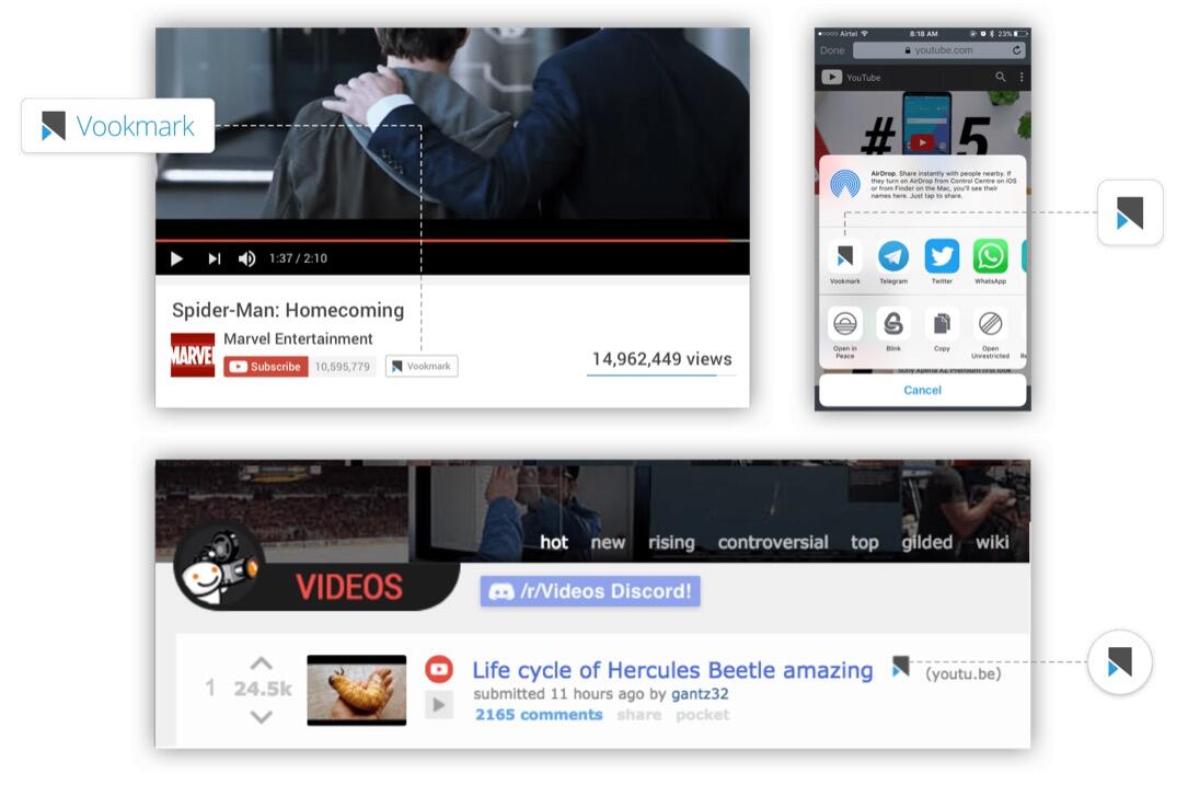 Der Dienst ist dabei kostenlos und sammelt alle abgelegten Clips an einem zentralen Ort. Nach dem Anschauen gehen die Videos nicht verloren, sondern landen in einem gesonderten Bereich für bereits abgerufene Clips. Als Videoquellen führt Vookmark aktuell YouTube, Facebook, Dailymotion, Vimeo und Reddit auf.