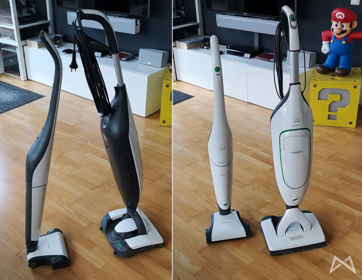 Der Akku-Sauger ist deutlich handlicher und kleiner als der große Kobold SP600 Saugwischer. Das fällt am obigen Bild natürlich sofort auf. Ebenso fällt das nicht mehr störende (lange) Stromkabel weg und der untere Wisch-Aufsatz ist natürlich auch deutlich größer, als der EBB100 beim Akku-Sauger.