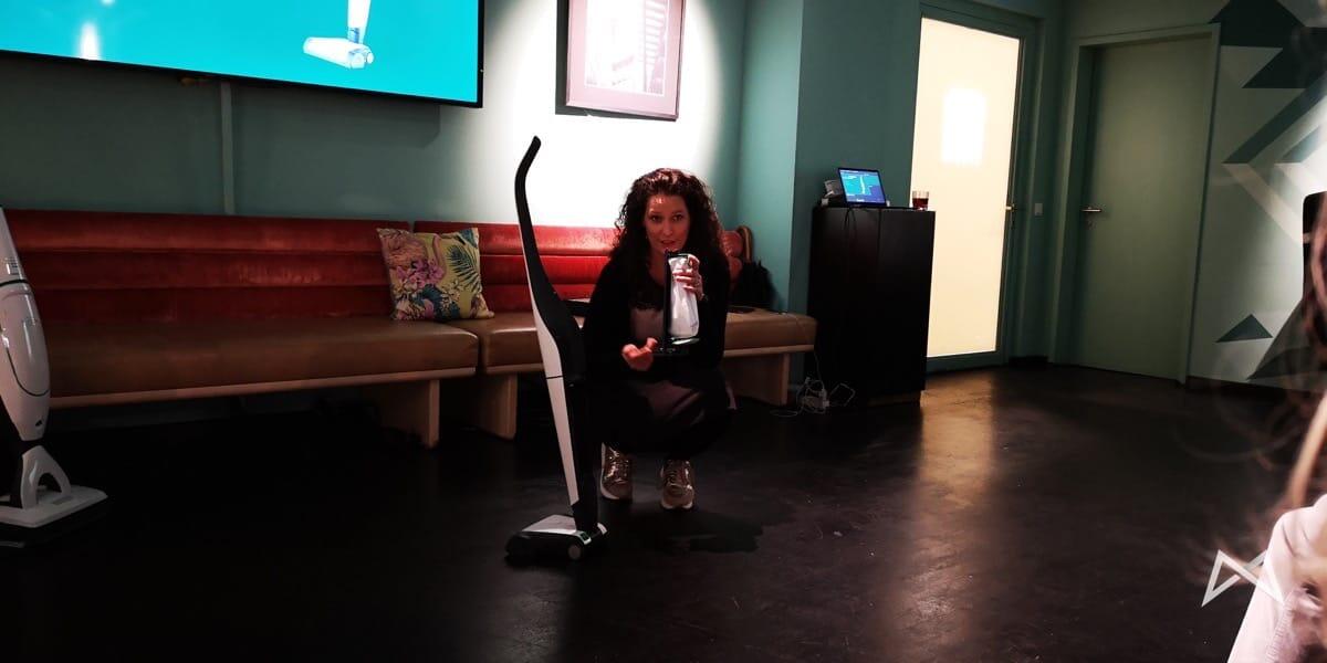 Ebenfalls vorgestellt wurde der VB100 Akku-Staubsauger in Verbindung mit der EBB100. Letzteres ist der untere Teil der Staubsaugers, nämlich ein weiterer Motor mit der extra angetriebenen Bürste. Der Akku-Sauger ist super handlich und wiegt auch nicht viel. Er hat wie eingangs erwähnt gleich zwei Motoren.