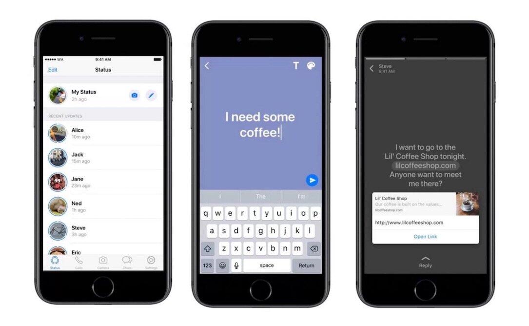Facebook hat WhatsApp aktualisiert und spendiert Status-Nutzern eine neue Funktion: Text-Beiträge mit farbigen Hintergründen.