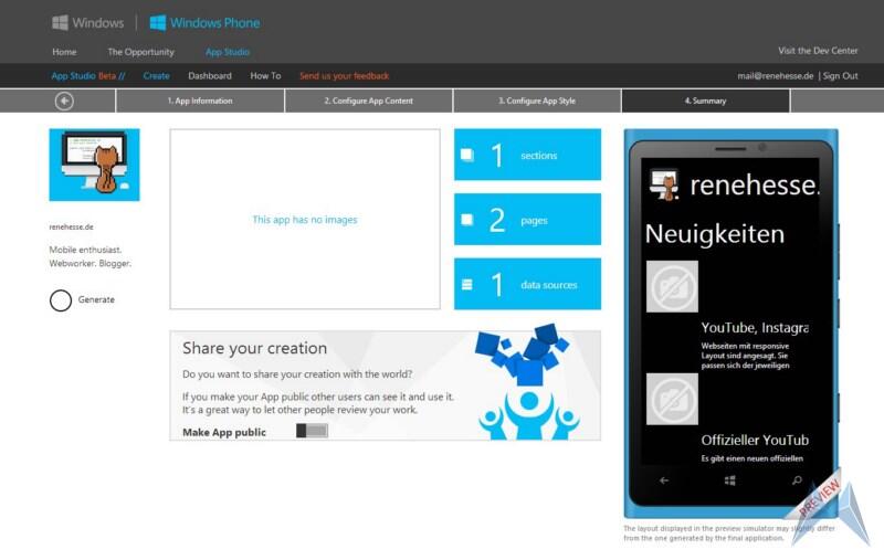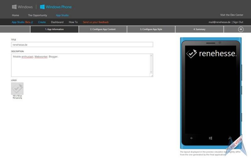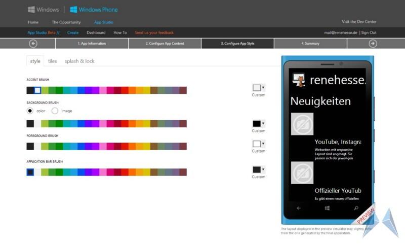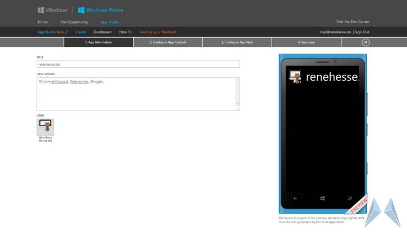 Mit dem Windows Phone App Studio (Beta) stellt Microsoft aktuell eine Möglichkeit vor, mit der sich im Grunde jeder mit ein paar Mausklicks seine eigene Windows-Phone-App zusammenbasteln kann. Benötigt wird nur ein Microsoft-Konto und dann kann es auch schon losgehen.
