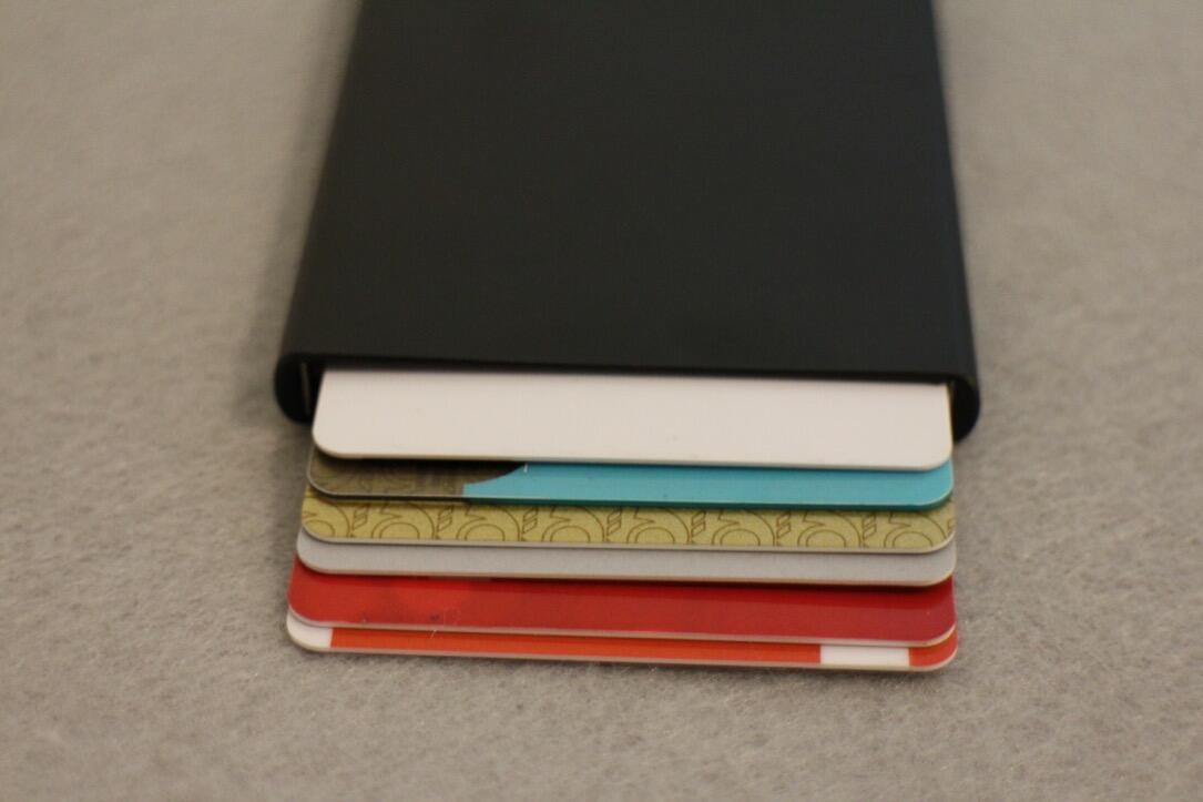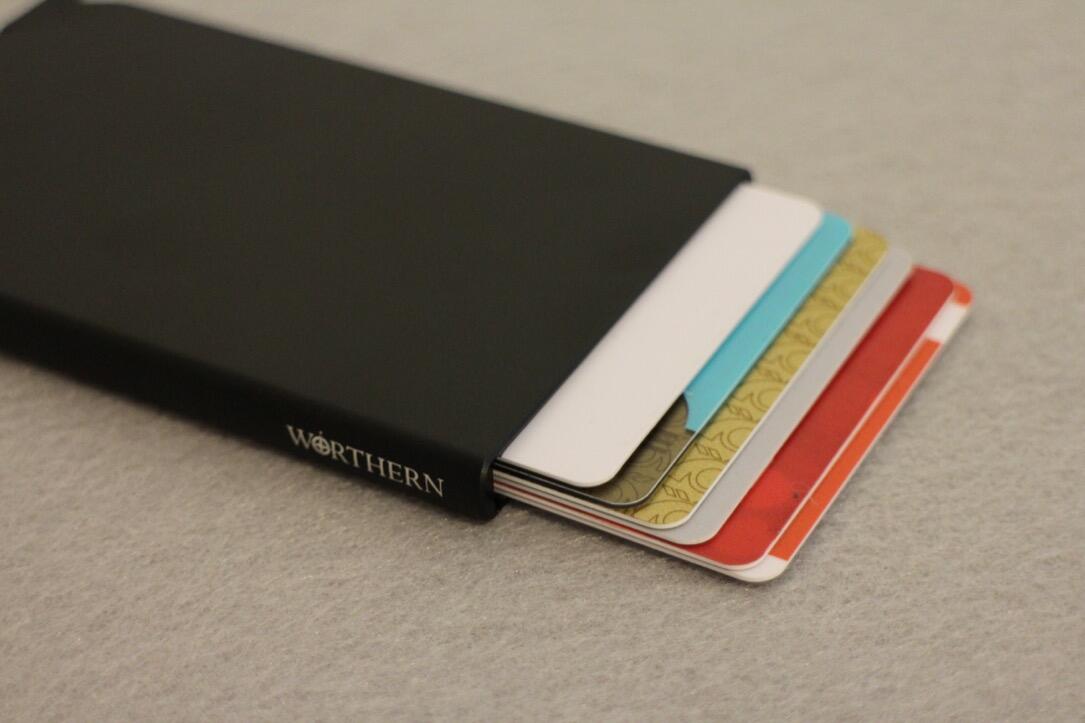 Das Worthern Kreditkartenetui ist 50 Gramm leicht und 10cm x 6cm x 1cm groß. Durch seine Beschichtung bietet es einen RFID-Schutz, Karten mit Kontaktlos-Funktionen können also nicht ausgelesen werden. Der Kreditkartenhalter ist aus Aluminium gefertigt und hält bis zu 6 Karten, wobei es egal ist, ob diese hochgeprägt sind oder nicht.