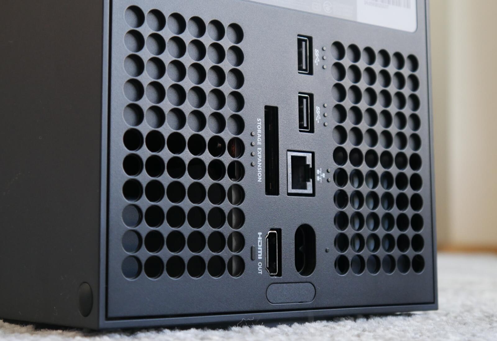 Vorne gibt es ein Blu-Ray-Laufwerk und einen USB-Slot. Hinten bekommt ihr zwei USB-Slots, einen Ethernet-Port und HDMI 2.1. Leider gibt es nur USB A, Microsoft hätte wenigstens einen USB C-Port einbauen können. Immerhin nutzt man die Konsole für viele Jahre und USB C ist schon jetzt der Standard der Branche.