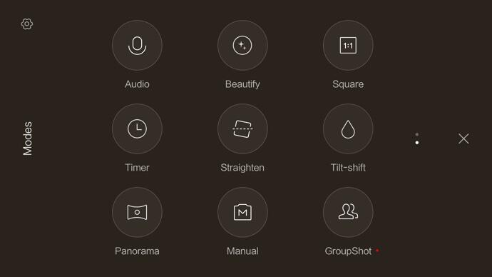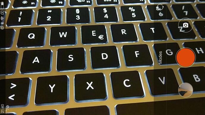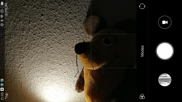 Auch das Kamera-Interface gefällt sehr gut. Man kann es als aufgeräumt bezeichnen. Ihr seht es oben, unterhalb des Zwischentitels. Unter Modes findet ihr die Besonderheiten der bordeigenen Kamera. Erwähnenswert sind hier die Möglichkeit einen Schuss per Sprache auszulösen (kein Hotword, einfach irgendein „Befehl“), die Option straighten sorgt dafür dass ihr, egal ob die Kamera schief gehalten wird, ein gerades Bild erhaltet (sehr praktisch), auch ein Nachtmodus HDD steht zur Verfügung. Die Optionen sind knapp gehalten, aber beinhalten, wie ich finde, die essentiellen Dinge. Weiterhin gibt es die Möglichkeit 1:1 Fotos, Panorama- und Gruppenbilder zu schießen.