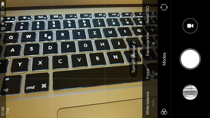Ein manueller Modus lässt sich auswählen. Der Wert für White Balance ist default 3000 und lässt sich manuell regeln zwischen 2000-8000. Die Belichtungszeit kann man zwischen 1/1000s-32s variieren. ISO ist regelbar zwischen 100-3200. Sehr positiv finde ich, dass man anhand der numerischen Werte regeln kann. Das ist bei anderen Herstellern schlechter gelöst.