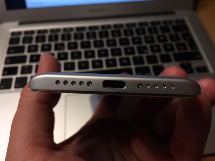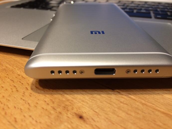 Das Augenscheinliche zuerst: Xiaomi hat hier ein Gerät abgeliefert, das einfach sexy aussieht und auf allerhöchstem Niveau verarbeitet ist. Zum Vergleich kann man gerne das iPhone 5s heranziehen, von dem es sich auch so ein paar Merkmale sagen wir mal „borgt“. Es hat nämlich die gleichen angeschliffenen Kanten, die Unterseite mit den löchrig ausgefrästen Lautsprechern, beziehungsweise den Mikrofonaussparungen und dem mittig platzierten Anschluss erinnert mich auch sehr an Apples Flaggschiff aus 2013/2014. Auch etwas iPhone 6 ist drin.