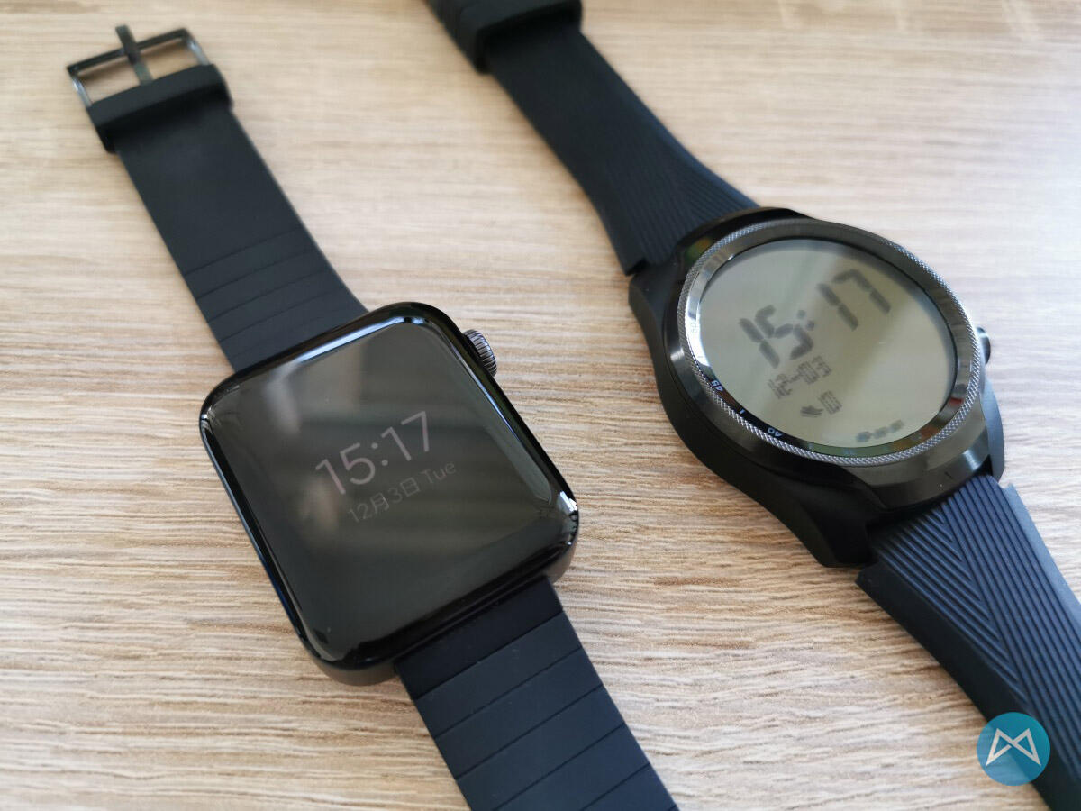 Die Smartwatch erinnert natürlich auf den ersten Blick an die Apple Watch. Wenn man die beiden Smartwatches aber nebeneinander legt, fällt auf, dass hier einige Unterschiede bestehen. Das ist im Grunde ähnlich wie bei den aktuellen Smartphones. Von vorne betrachtet sind alle fast nur noch ein Display und der Unterschied liegt dann eben oft im Detail verborgen.