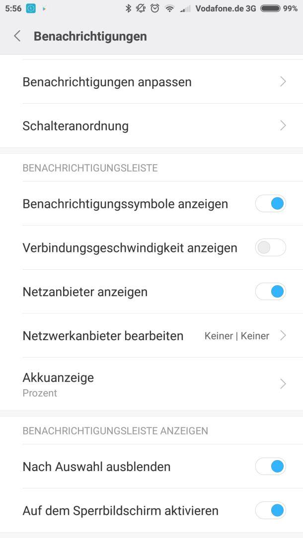 Es wurde zudem ein Lesemodus integriert, welche das Display ein wenig augenschonender dimmt, die Kopfhörertasten können über die Einstellungen zugeordnet werden und auch die Benachrichtigungsleiste kann ebenfalls angepasst werden. Hier kann unter anderem die aktuelle Übertragungsgeschwindigkeit dargestellt werden, oder aber beispielsweise der Mobilfunkanbieter oder auch nur die Prozentanzeige für den Akku aktiviert werden.