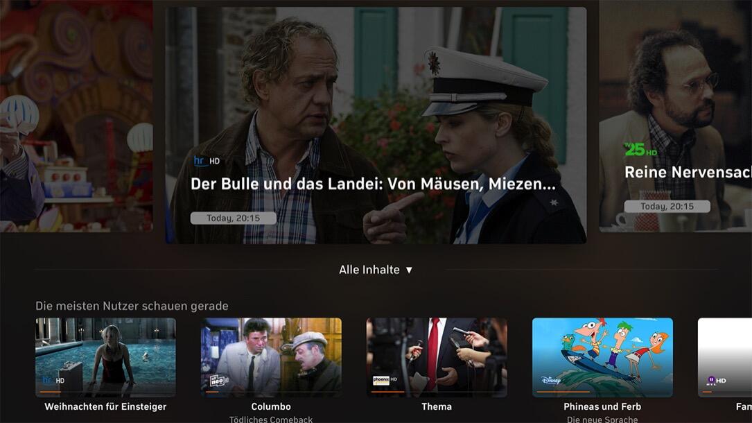 - beim Öffnen der App ist zum Start Live-TV zu sehen
