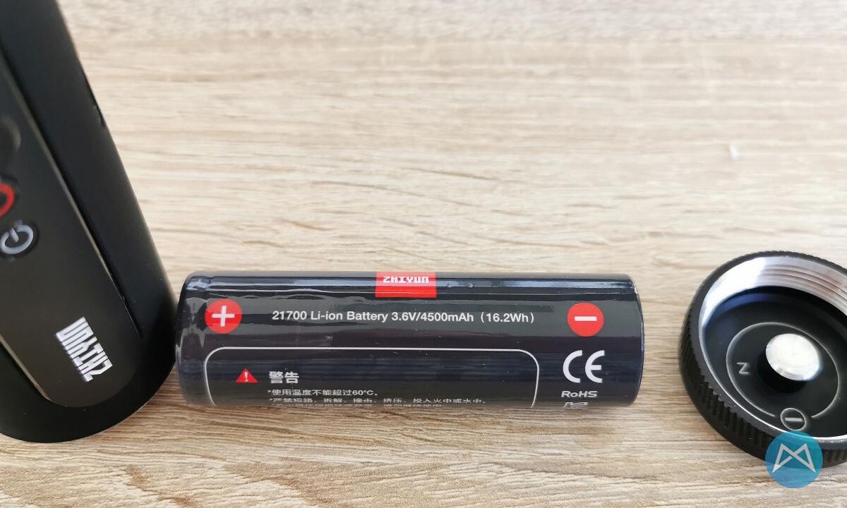 Der abschraubbare Deckel an der Unterseite beherbergt den 3.6V/4500 mAh Akku, welcher ganz einfach ausgetauscht werden kann, falls die ca. 16 Stunden Betriebszeit nicht ausreichen.