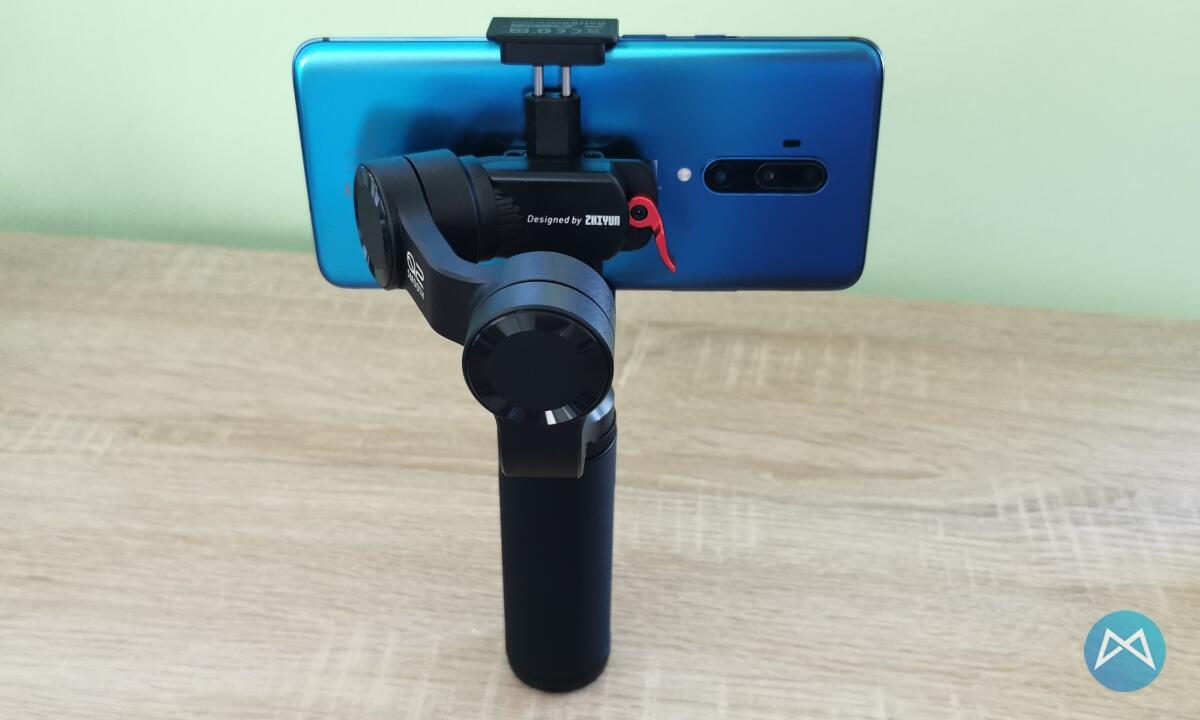 Im Falle des Q2 lässt sich, wie wir an dem Foto oben sehen, der obere Teil der Handyhalterung noch abnehmen. Der Schnellverschluss soll zum einen dafür dienen, dass man auch schnell ein Telefonat annehmen kann und anschließend einfach das Smartphone mit weiterhin aufgesteckter Halterung direkt wieder am Gimbal einhängt.