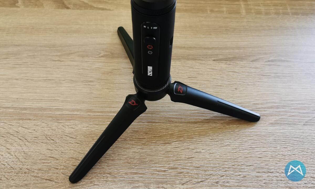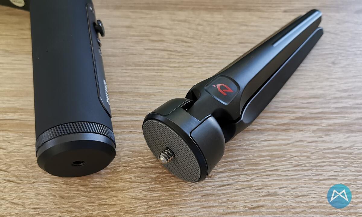 Auf der Unterseite des Smooth Q2 befindet sich das genormte Gewinde für einen Tripod oder eine (Selfie)Verlängerung, falls der normale Gimbal zu kurz ist oder auf der örtlichen Gegebenheit evtl. nicht richtig stehen würde.