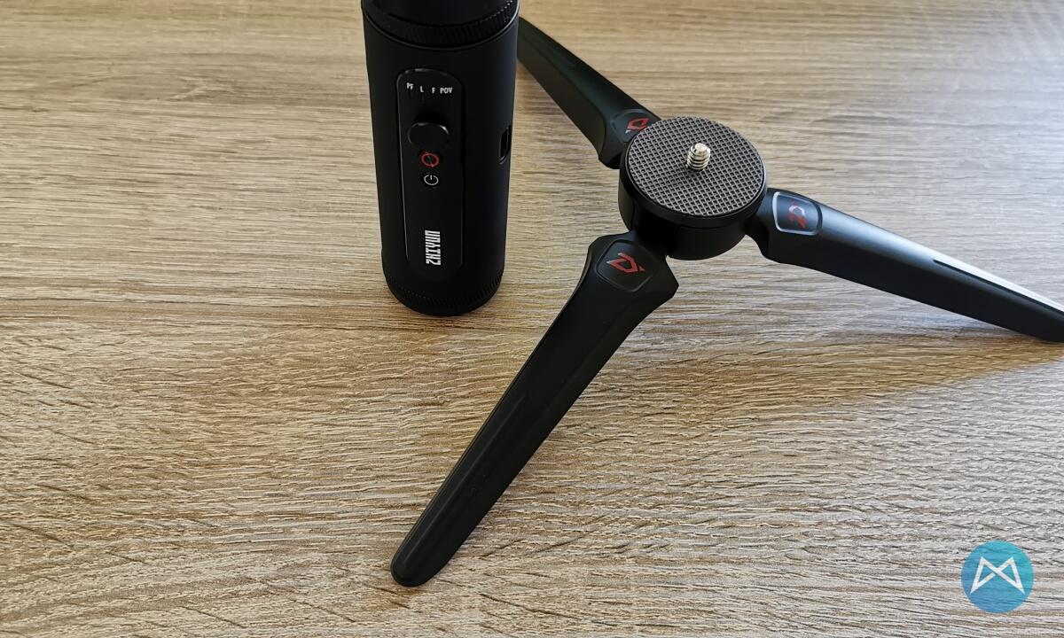 Auf der Unterseite des Smooth Q2 befindet sich das genormte Gewinde für einen Tripod oder eine (Selfie)Verlängerung, falls der normale Gimbal zu kurz ist oder auf der örtlichen Gegebenheit evtl. nicht richtig stehen würde.