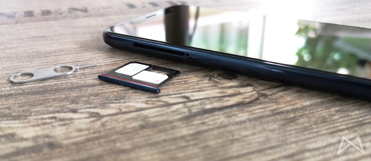 Der SIM-Slot ist ebenfalls typisch für viele aktuelle Modelle ein Hybrid-Slot. So kann der Käufer entweder zwei Nano-SIMs nutzen, oder eine Nano-SIM und im zweiten Bereich den Speicher des Smartphones mit einer MicroSD erweitern.