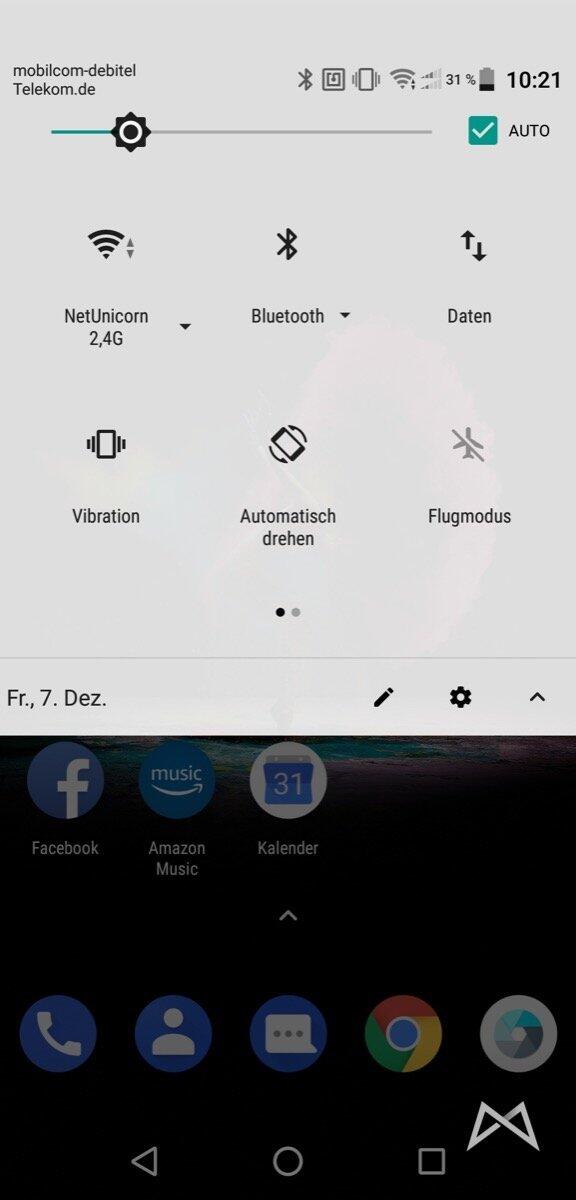 Nach dem üblichen Einrichtungsassistenten zeigt sich das Betriebssystem, welches noch sehr an Stock angelehnt ist. Ab und zu finden wir kleine Übersetzungsfehler, die zwar nicht sonderlich stören, aber doch auffallen.