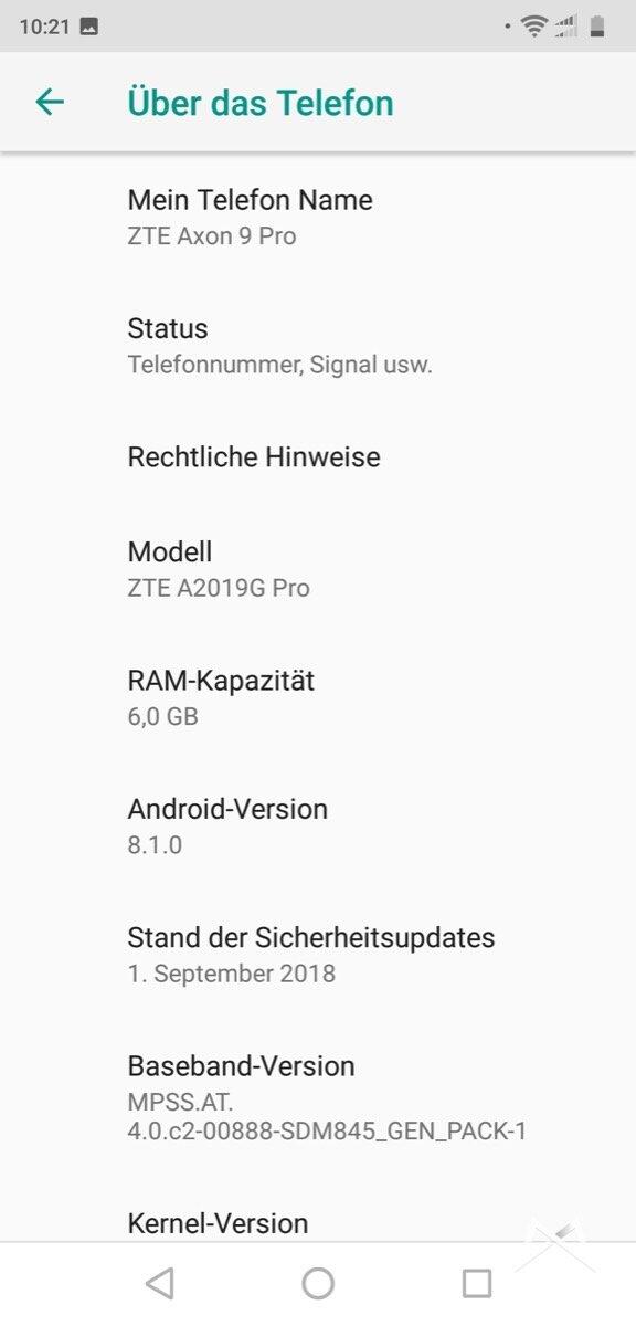 Software des ZTE Axon 9 Pro
