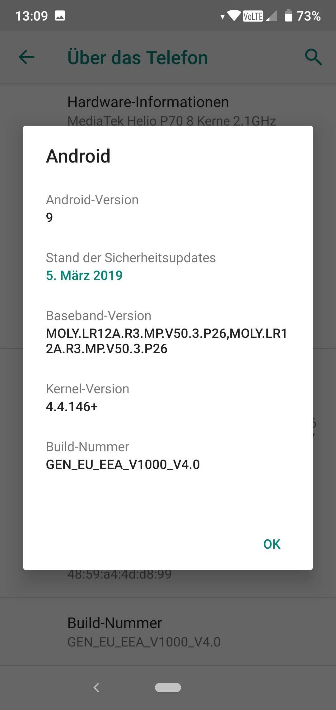 In meinem Fall erschien noch ein aktuelles Firmware-Update und so bin ich hier mittlerweile bei Android 9 mit Sicherheitspatch vom März 2019 angelangt. Die Oberfläche ist angenehm an Stock Android angelehnt und kaum mit großen Schnörkeleien verschandelt. Dies dürfte dafür sorgen, dass wir auch noch in Zukunft mit ein paar Updates versorgt werden.