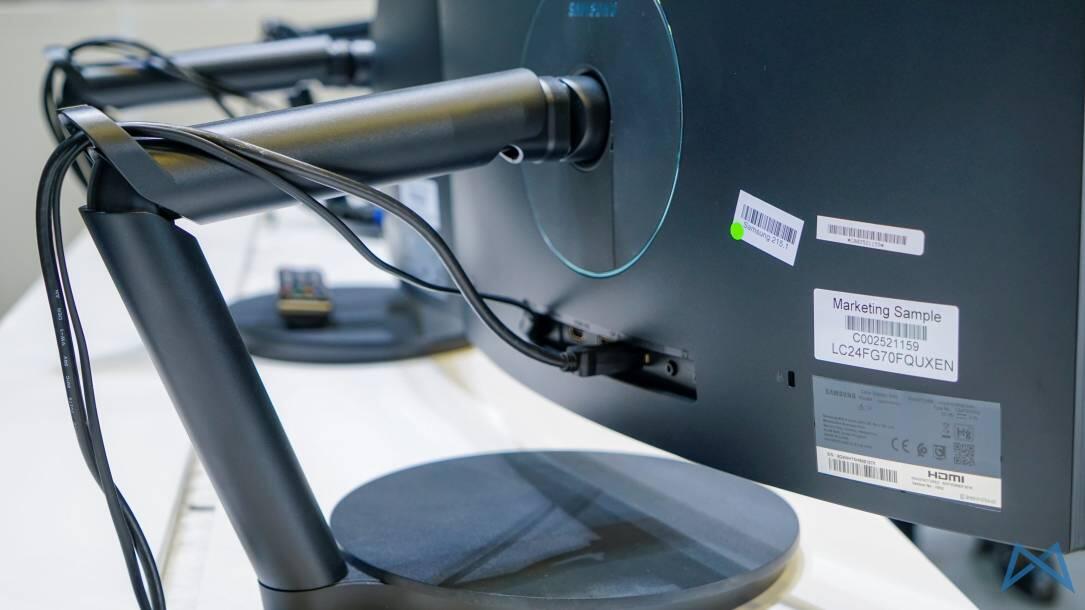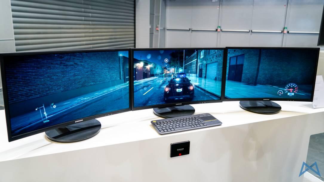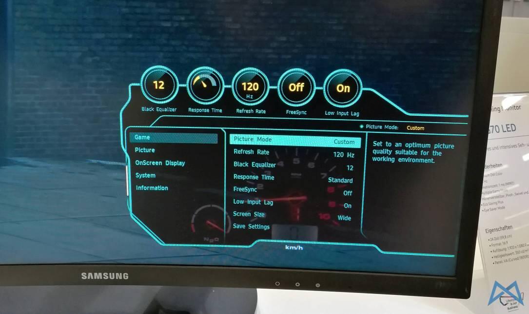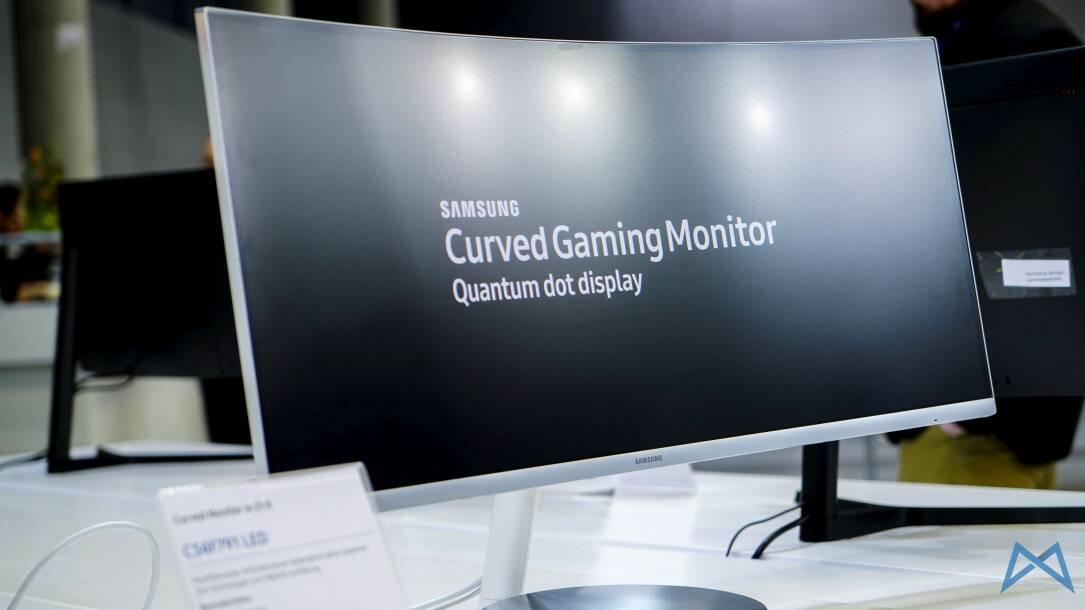 Angefangen hat unsere Führung bei den neuen Monitoren. „Curved“ ist hierbei immer noch das Haupt-Thema. Natürlich werden diese Monitore mittlerweile auch in Richtung Gaming optimiert und haben Reaktionszeiten von 1ms und Einstellungen, die nicht mehr so verschachtelt sind und auch grafisch eher in den Gaming-Bereich passen.
