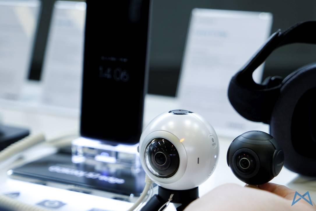 Danach ging es direkt weiter in die „mobile“ Abteilung. Gear VR und die Gear 360 waren ein Thema und auch die neuen Galaxy Books mit installiertem Windows und der Möglichkeit der Stifteingabe und Tastaturdock. Ich habe die aktuell im Test befindliche Insta360 Air 360 Grad Kamera mal direkt neben die Gear 360 gehalten, um einen kleinen Größenvergleich zu erhaschen: