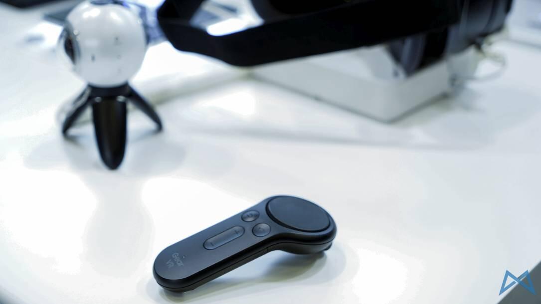 Zur aktuellen Gear VR wurde noch die neue Fernbedienung gezeigt. Selbige soll eine einfachere Bedienung des in der VR-Brille dargestellten Inhalts ermöglichen. Man muss damit eben nicht mehr blind an das Steuerkreuz an der Brille selbst tasten, sondern kann die Fernbedienung nutzen. Sie besitzt unter anderem ein Steuerkreuz und einen Trigger usw. Betrieben wird sie mit einer Batterie, die aber sehr lange ausdauern soll.