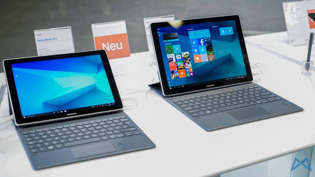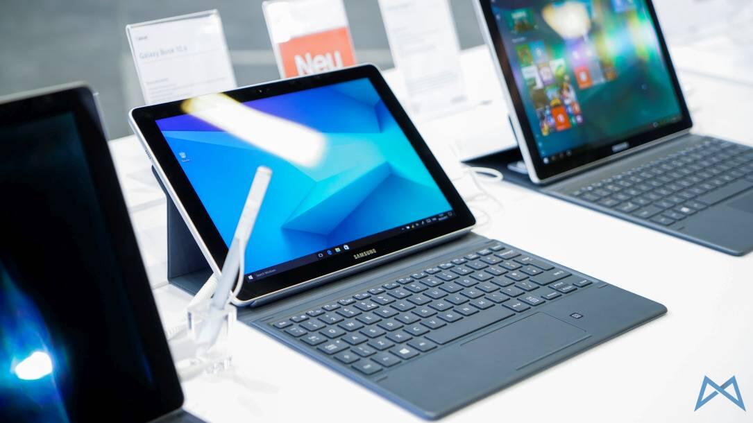 Hier noch zwei Bilder von den ausgestellten Galaxy Books inkl. Stift und Tastatur, welche übrigens mit einer Pogopin-Verbindung an das Tablet angeschlossen wird. Details zu diesen Geräten erhaltet ihr dann bei einem ausgiebigen Test, sofern Geräte dazu in der Redaktion eintrudeln.